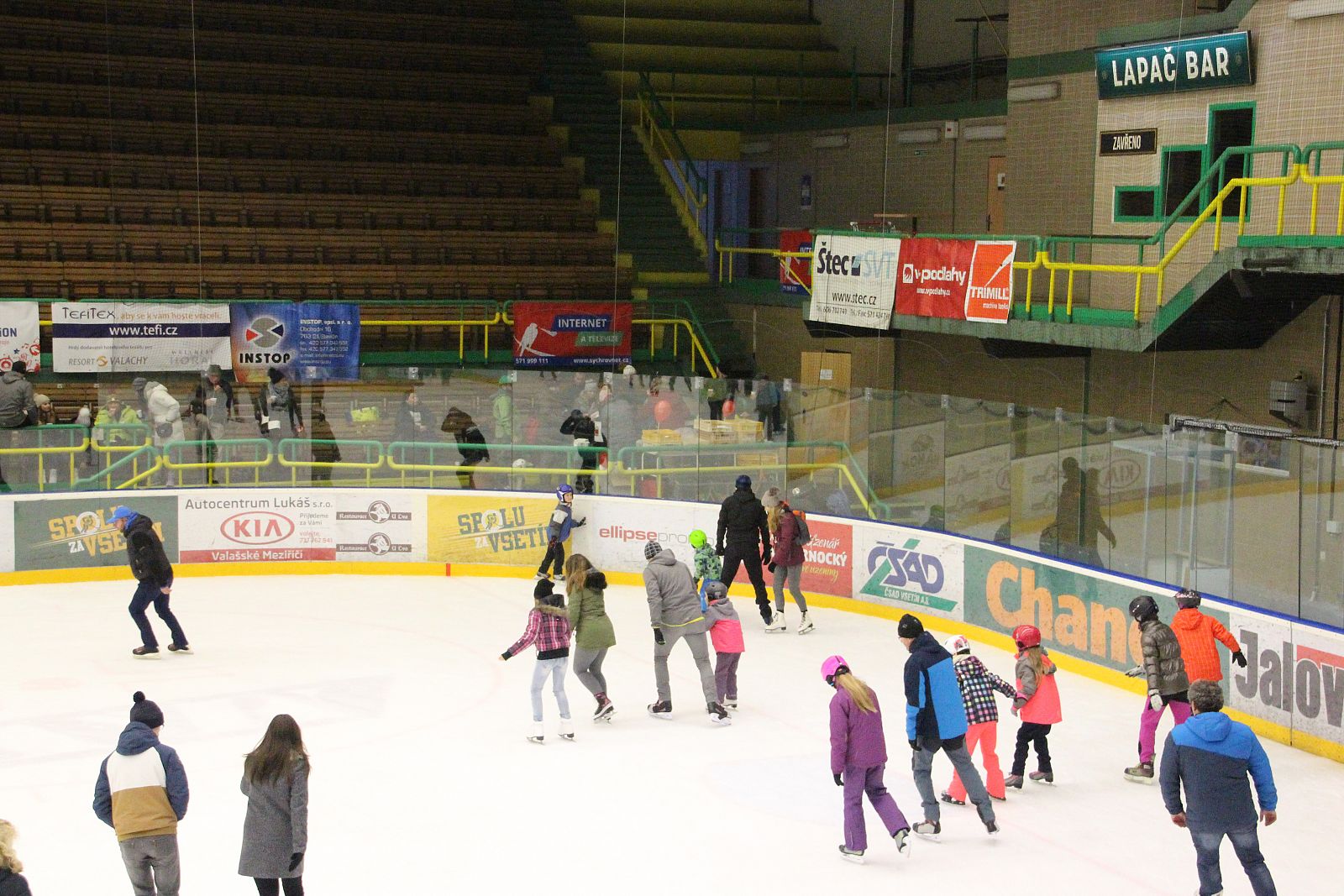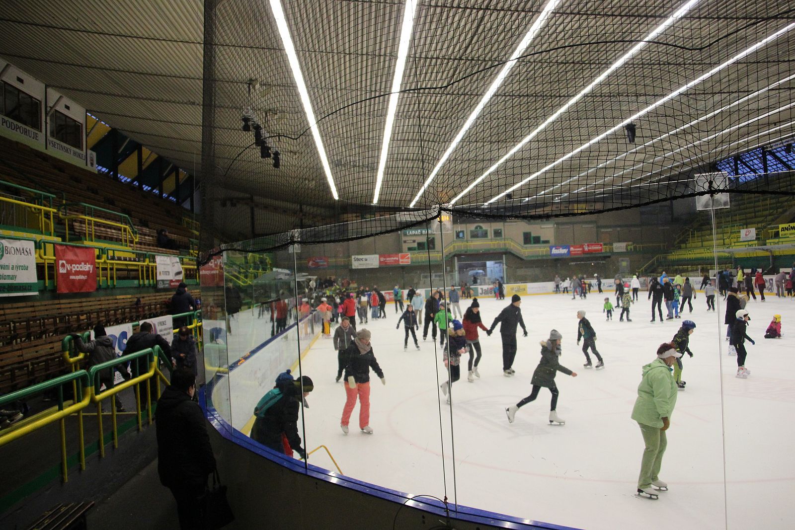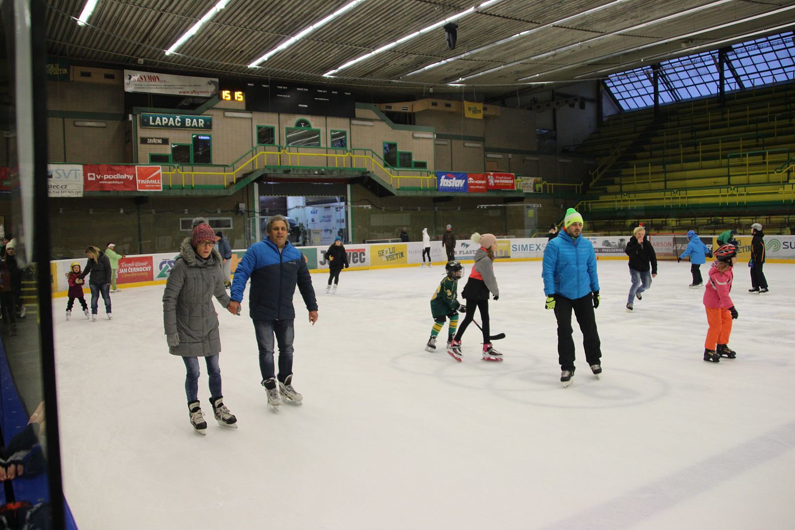 Příchozí si mohli užít dvouhodinové bruslení zdarma, během kterého se podávaly teplé